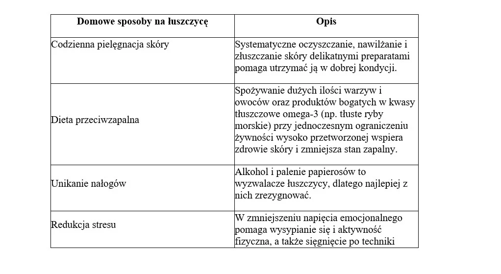 Domowe sposoby leczenia łuszczycy nie zastąpią terapii prowadzonej przez dermatologa. Można je jednak traktować jako uzupełnienie leczenia dermatologicznego. Są to różne działania, które pacjent może wdrożyć samodzielnie, aby minimalizować nasilanie się choroby i poprawić swój komfort życia.
