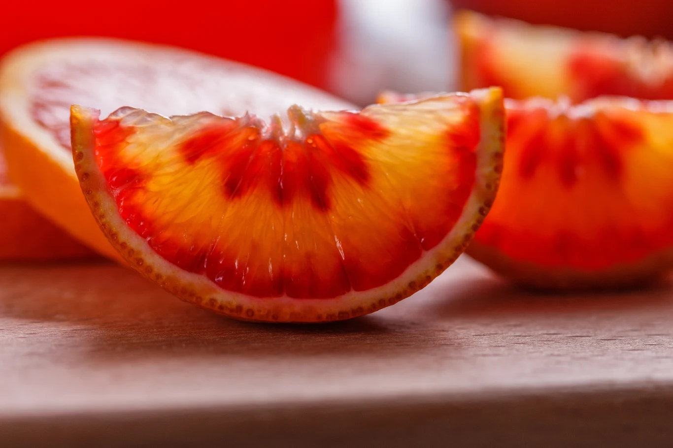Czerwone pomarańcze mają charakterystyczny miąższ o krwistoczerwonej barwie, za którą odpowiada zawartość antocyjanów. Jest on o wiele słodszy i bardziej soczysty od klasycznych pomarańczy. Dodatkowo charakteryzuje się dużą zawartością niezbędnych witamin i minerałów.