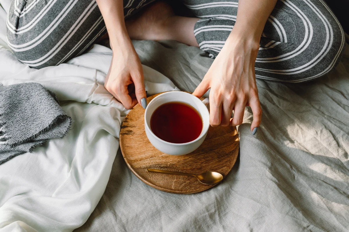 Herbata mnichów działa głównie poprzez uspokojenie układu nerwowego i przygotowanie organizmu do snu.